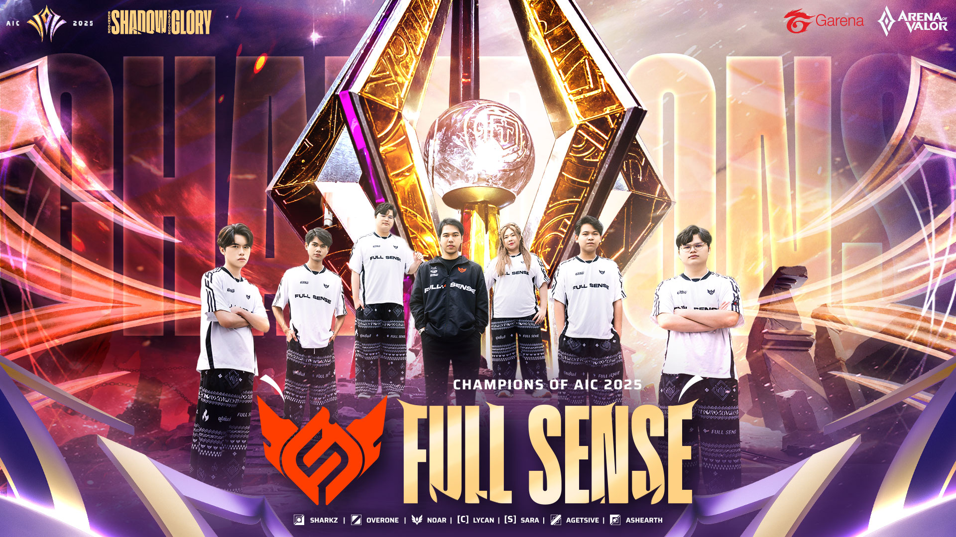 《Garena 傳說對決》國際錦標賽AIC 2025 於上週末在越南河內的河內室內體育館圓滿落幕,最終由代表RoV Pro League (RPL) 賽區出戰的FULL SENSE (FS) 戰隊在總決賽對決中,以 4:1 擊敗了 Garena Challenger Series (GCS) 賽區的Flash Wolves (FW) 戰隊,登上王座成為新科世界冠軍,贏得20萬美金的冠軍獎金。FS戰隊成員包括AshEarth、OverOne、Agetsive、Sharkz和 Noar,自小組賽以來保持著零敗績的紀錄,展現絕對的宰制力,本次奪冠更同時象徵 RPL 賽區在 AIC 國際舞台上實現了歷史性的三連冠。而亞軍FW雖然在敗部組一路過關斬將,先後以 4:3 擊退 RPL 另兩支代表隊伍—— PSG Esports(PSG)與 去年 AIC 冠軍 Bacon Time(BAC),成功突圍挺進最終冠亞賽;但在決賽中仍不敵 FS 攻勢,最終以亞軍作收,無緣實現年度大滿貫。