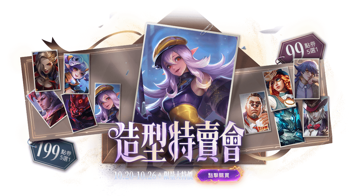 ※ 虛寶獎勵若為永久造型、造型體驗卡將不另外附贈英雄,需先自行擁有英雄始可使用虛寶造型。