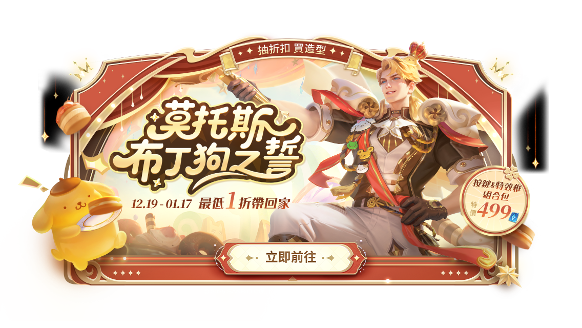 2. 挑戰者首次進入活動時,可以看到商品原價,挑戰者每輪可以花費小額點券抽取折扣;每輪抽取的折扣將會累加,挑戰者可依照最後的優惠價格購買大獎 「莫托斯 布丁狗之誓」。