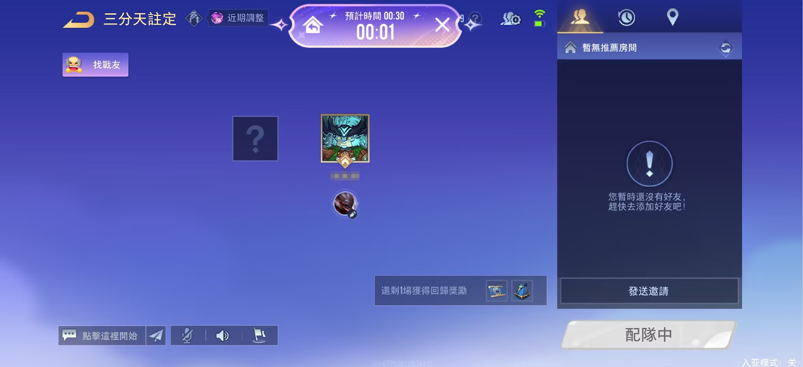 為了縮短進入對局前的等待時間,此玩法將跳過匹配確認和選人環節,匹配成功後直接進loading介面,因此挑戰者需要先在房間內預選英雄再進行匹配。